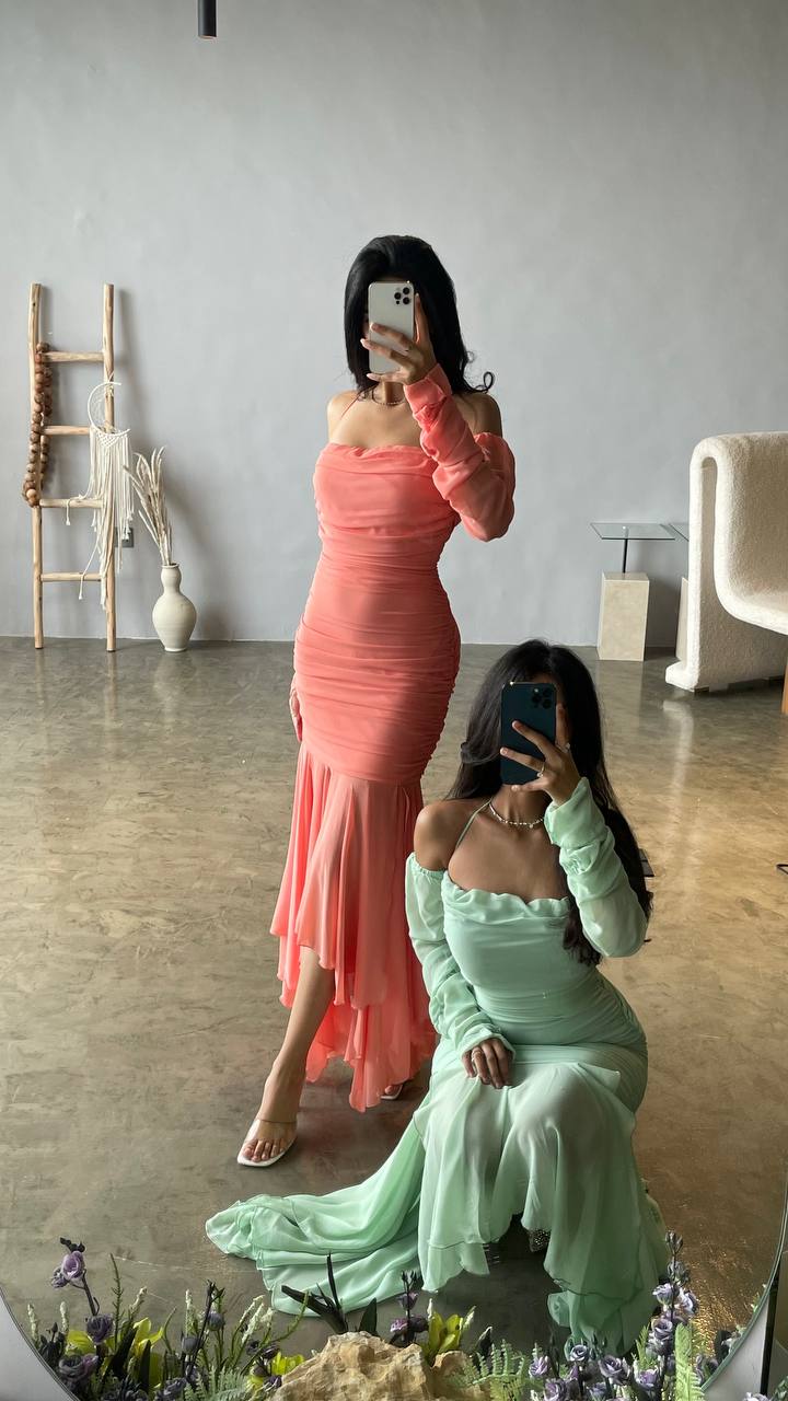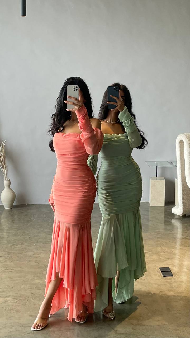 Off-Shoulder Ruched Maxi Dress with Flared Hem