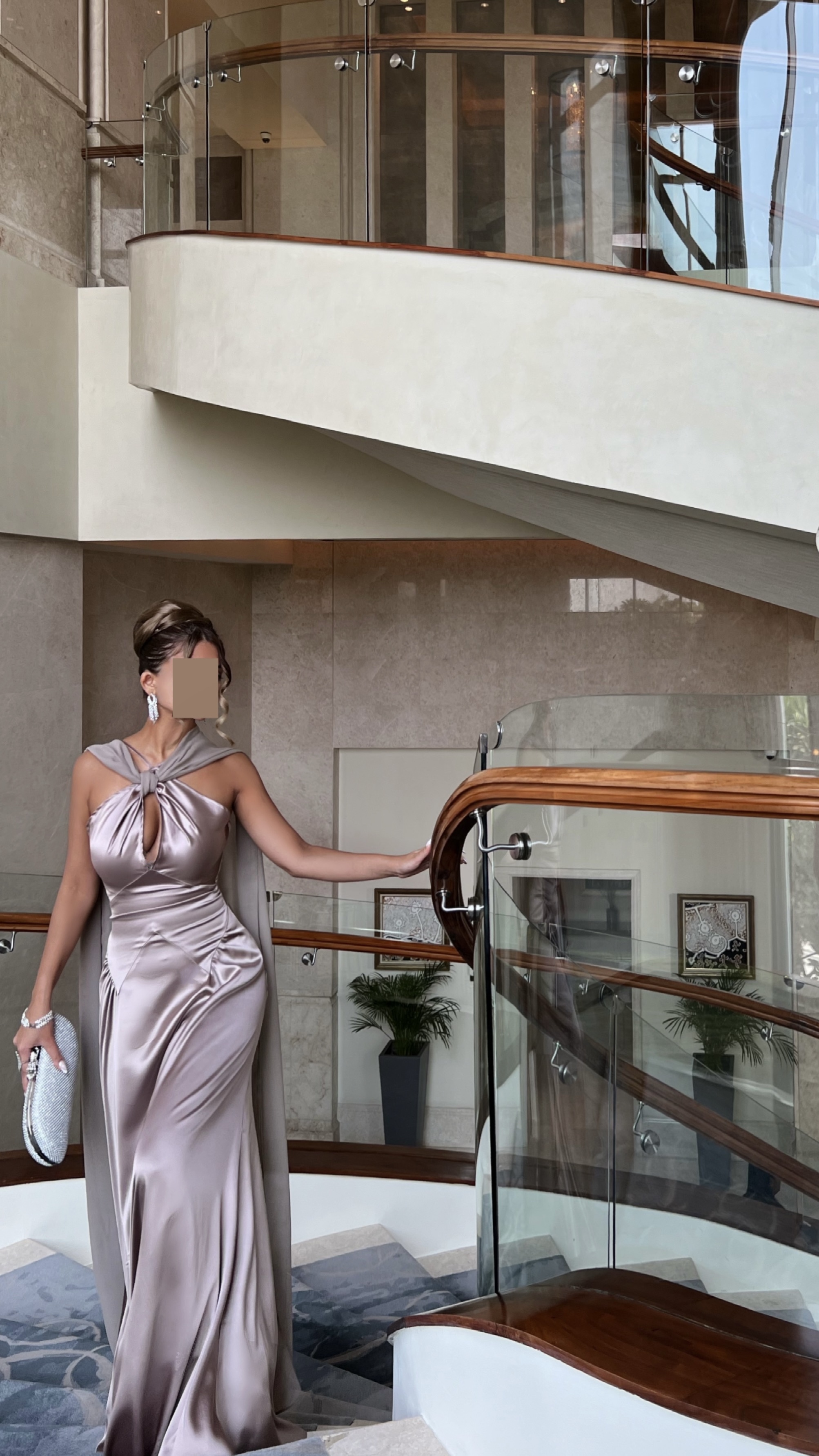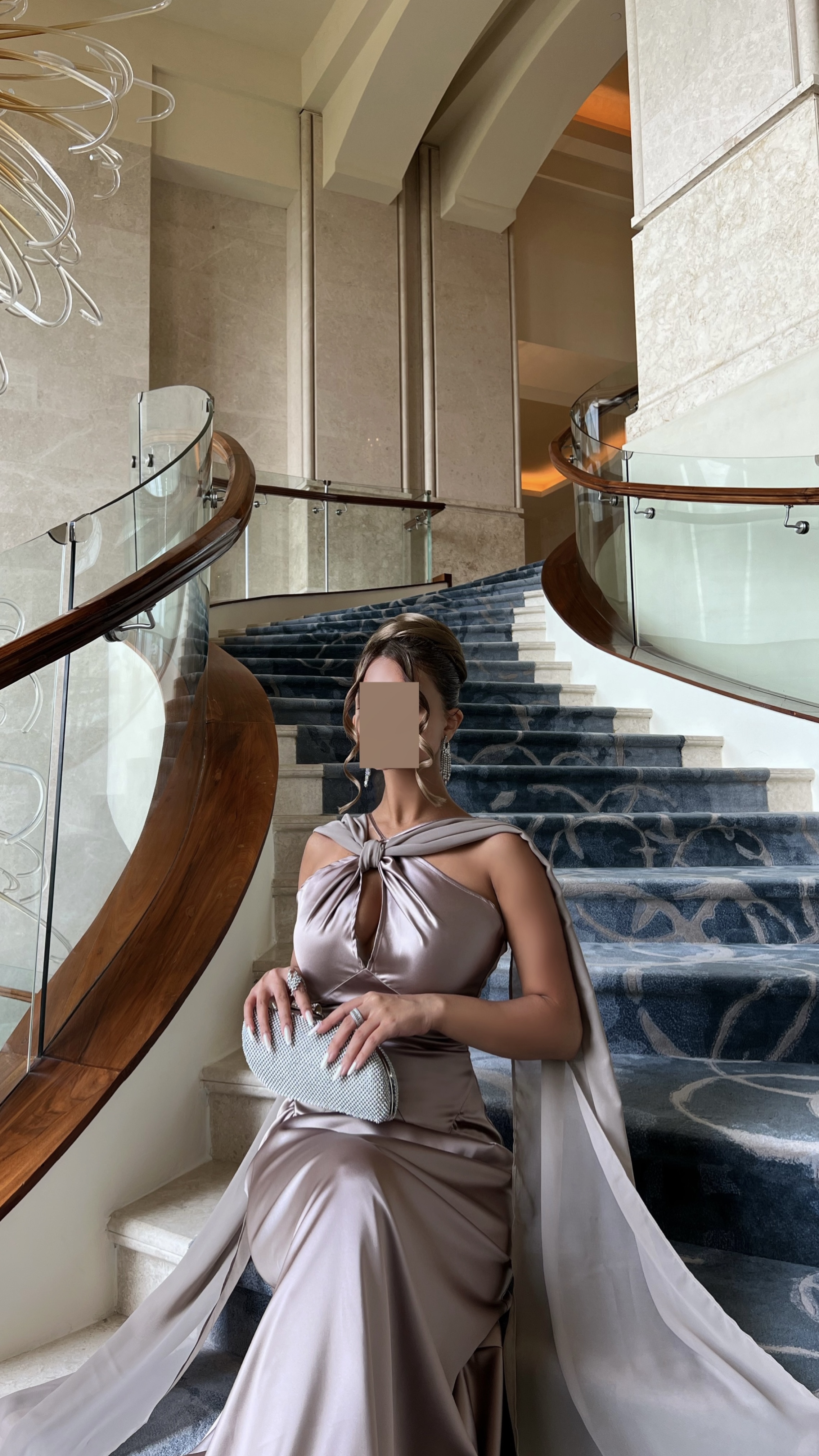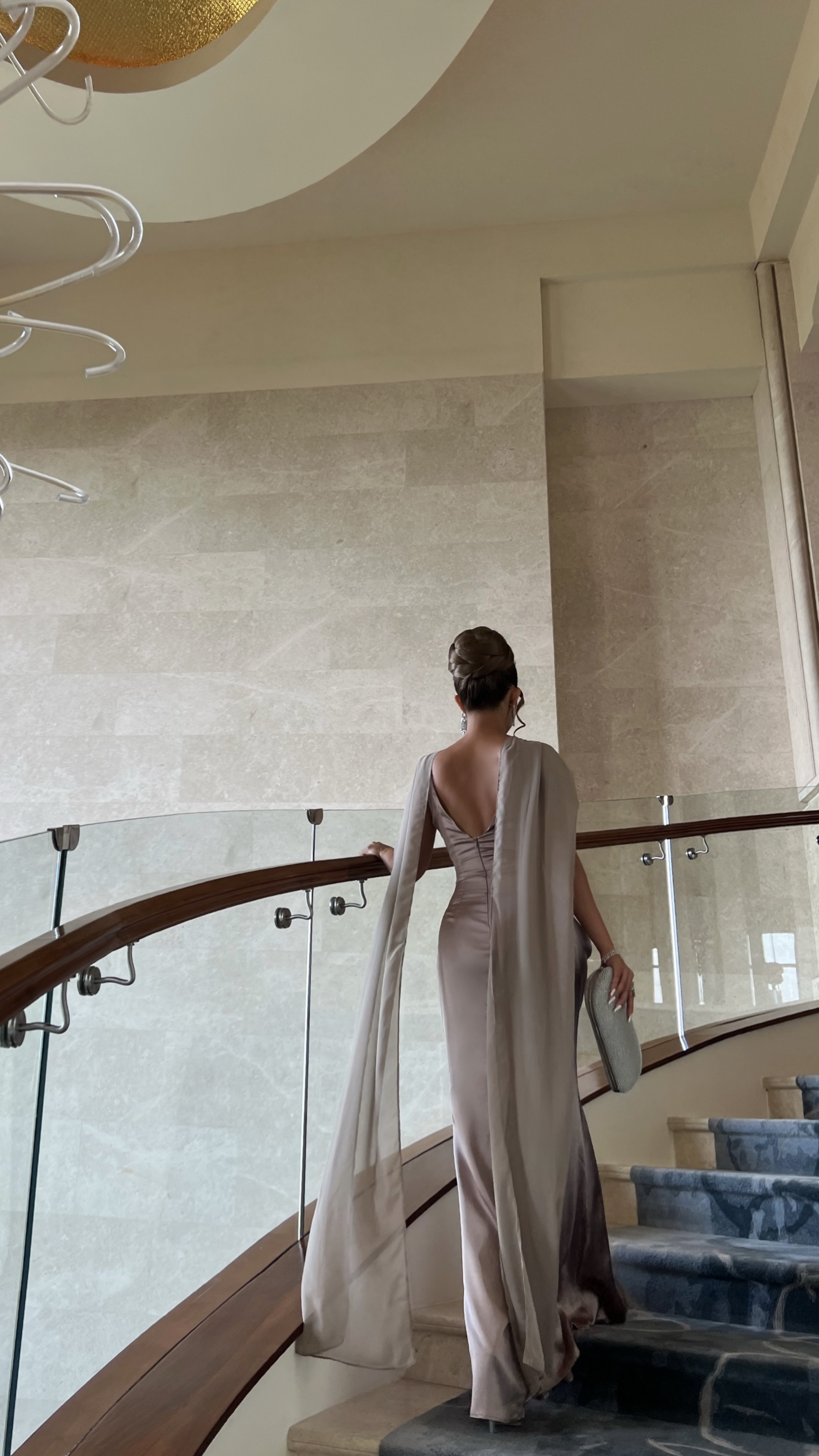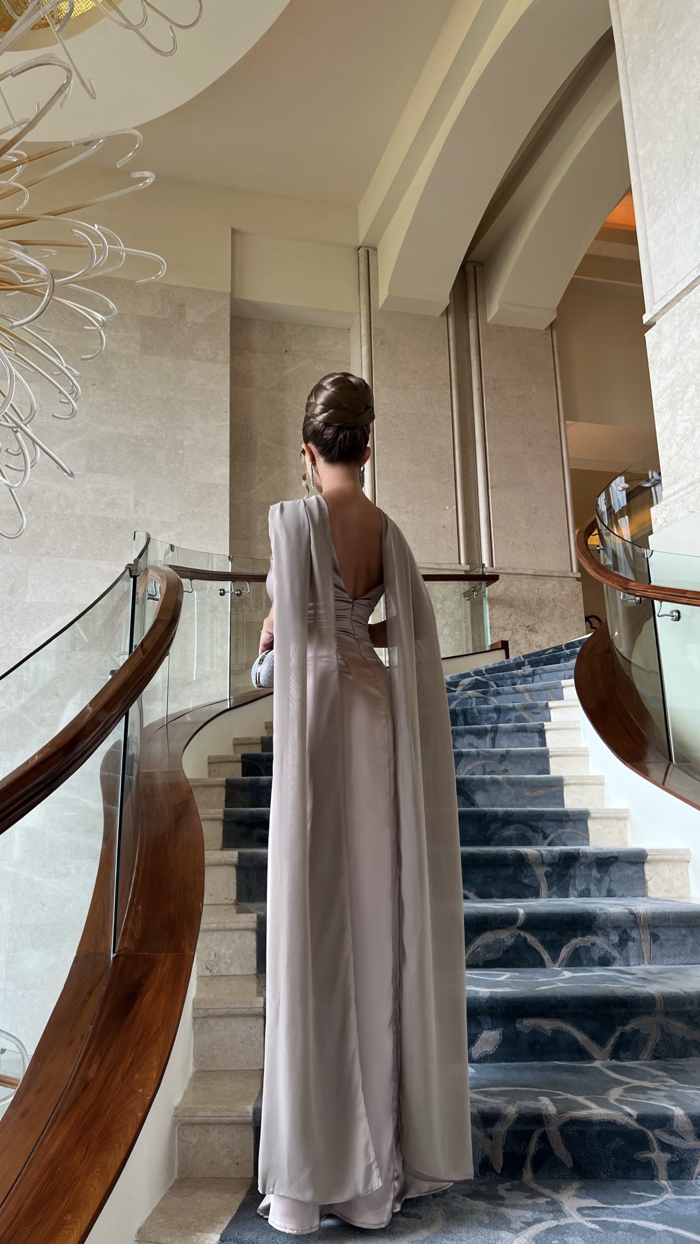Satin Halter Maxi Dress with Draped Cape – Taupe