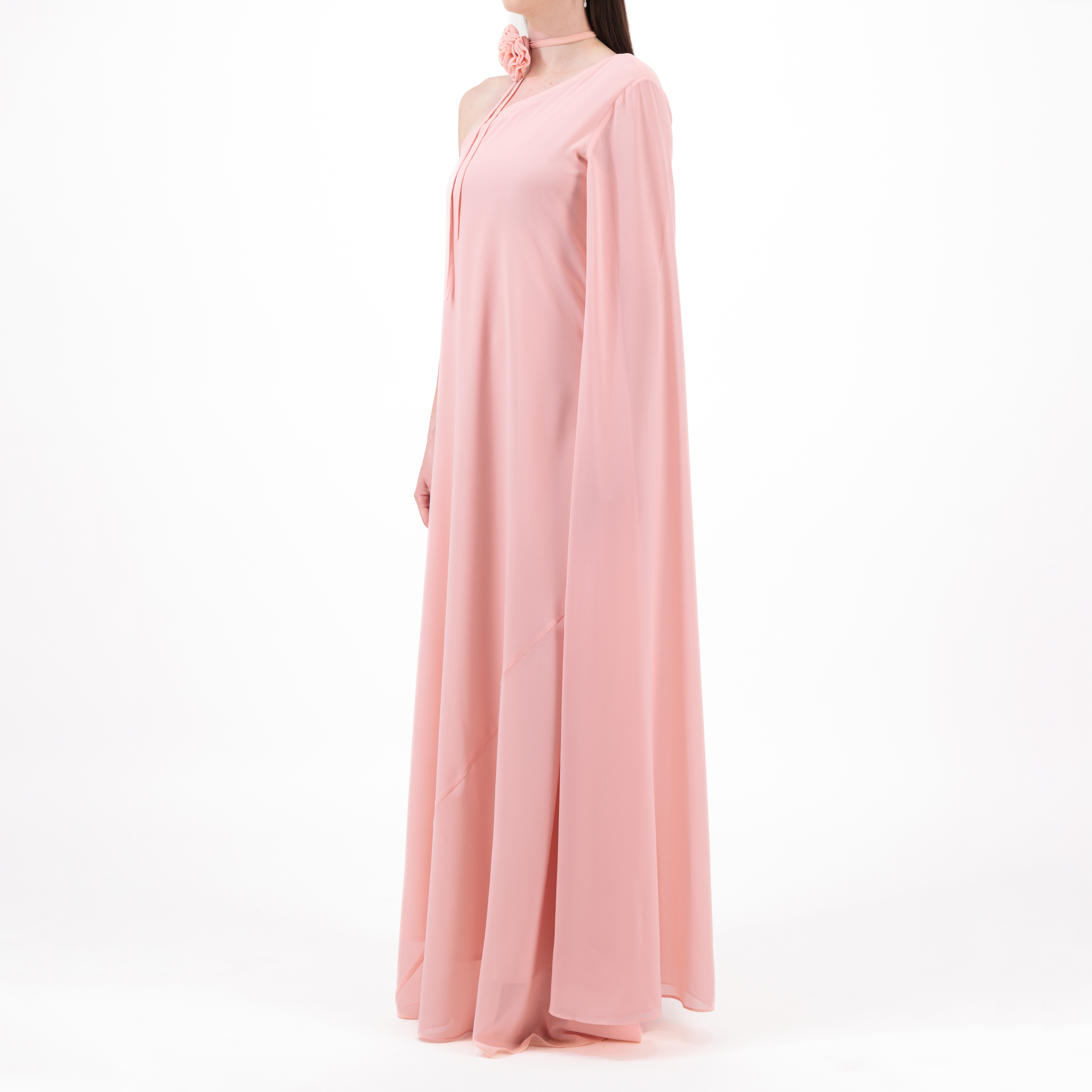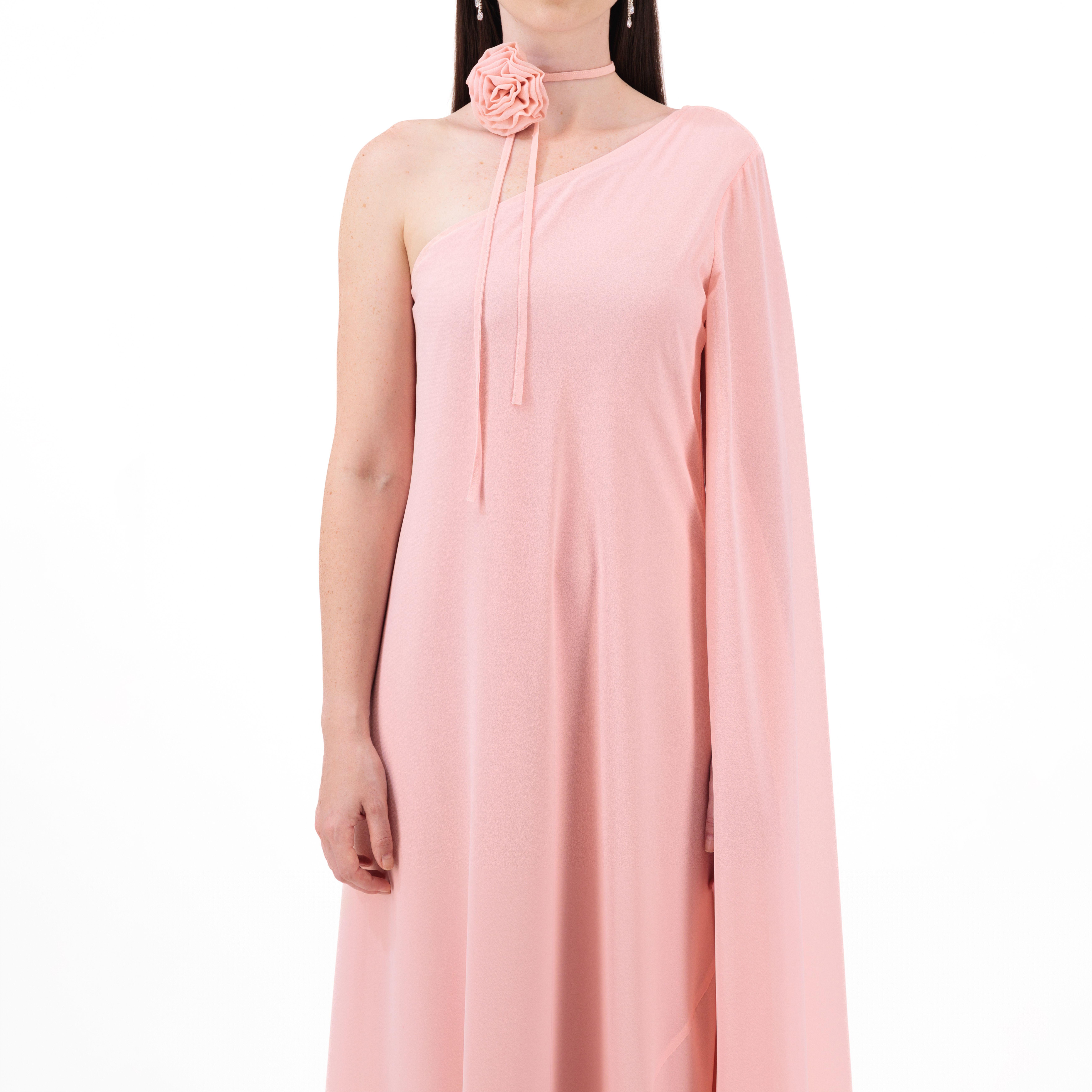 One-Shoulder Maxi Dress with Floral Detail – Blush