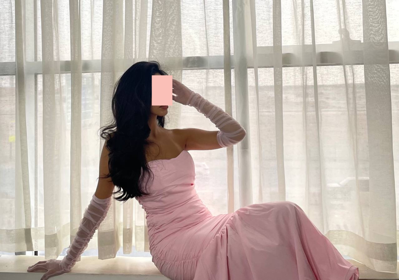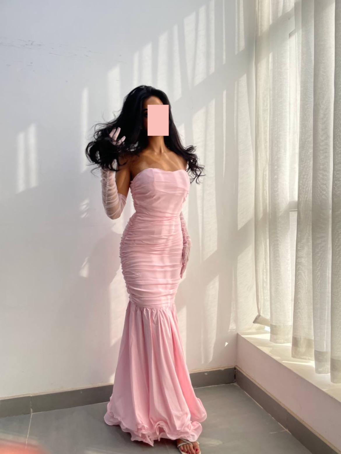 Strapless Ruched Maxi Dress with Sheer Gloves – Blush Pink