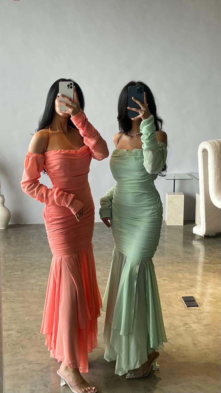 Off-Shoulder Ruched Maxi Dress with Flared Hem