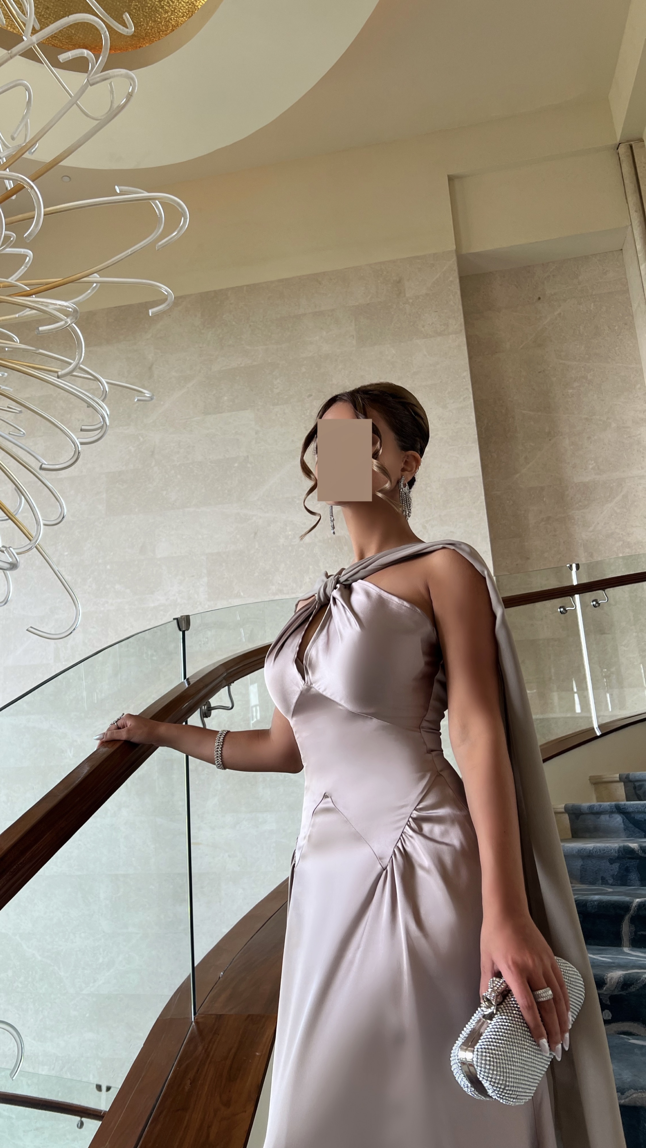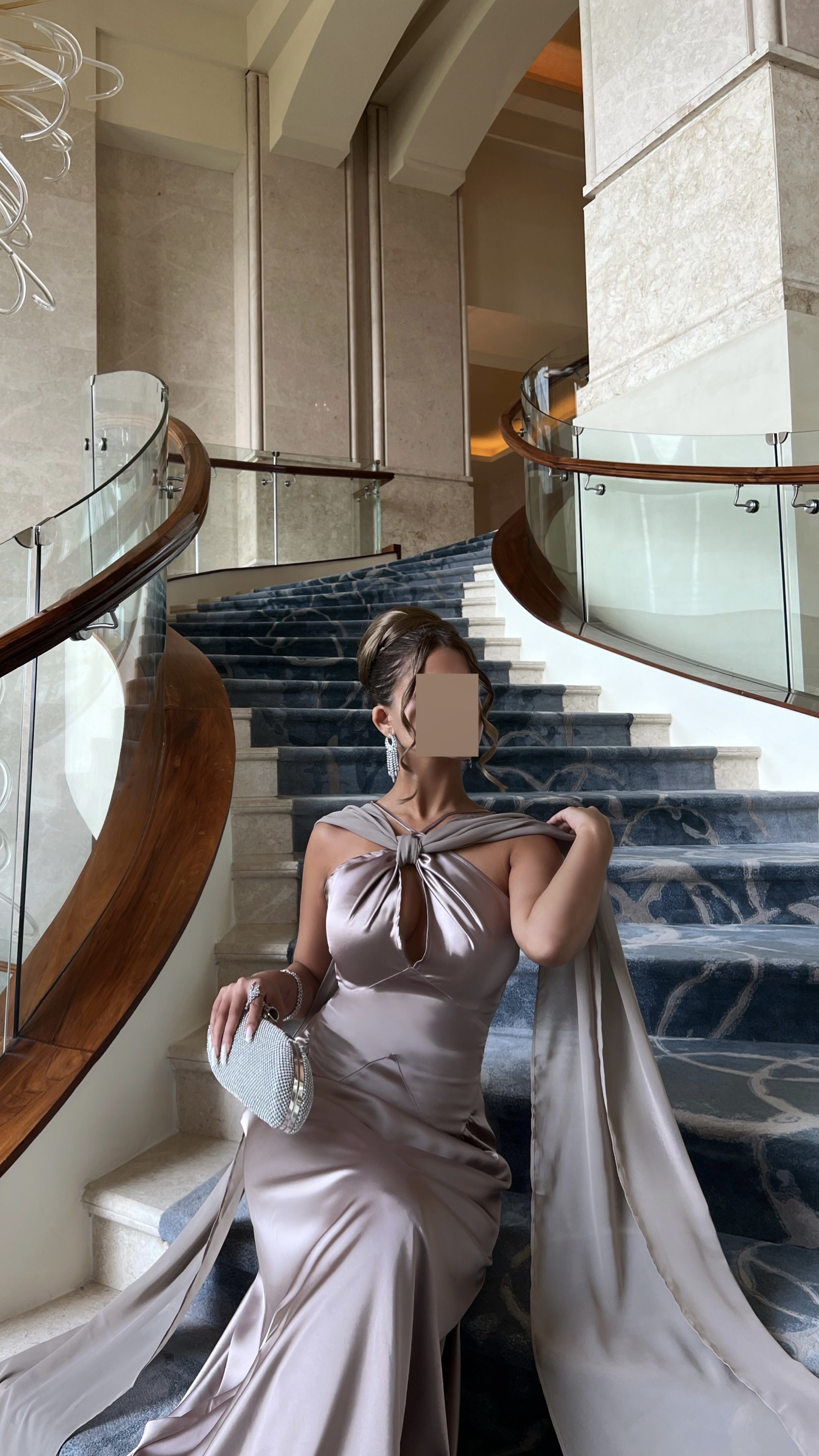 Satin Halter Maxi Dress with Draped Cape – Taupe