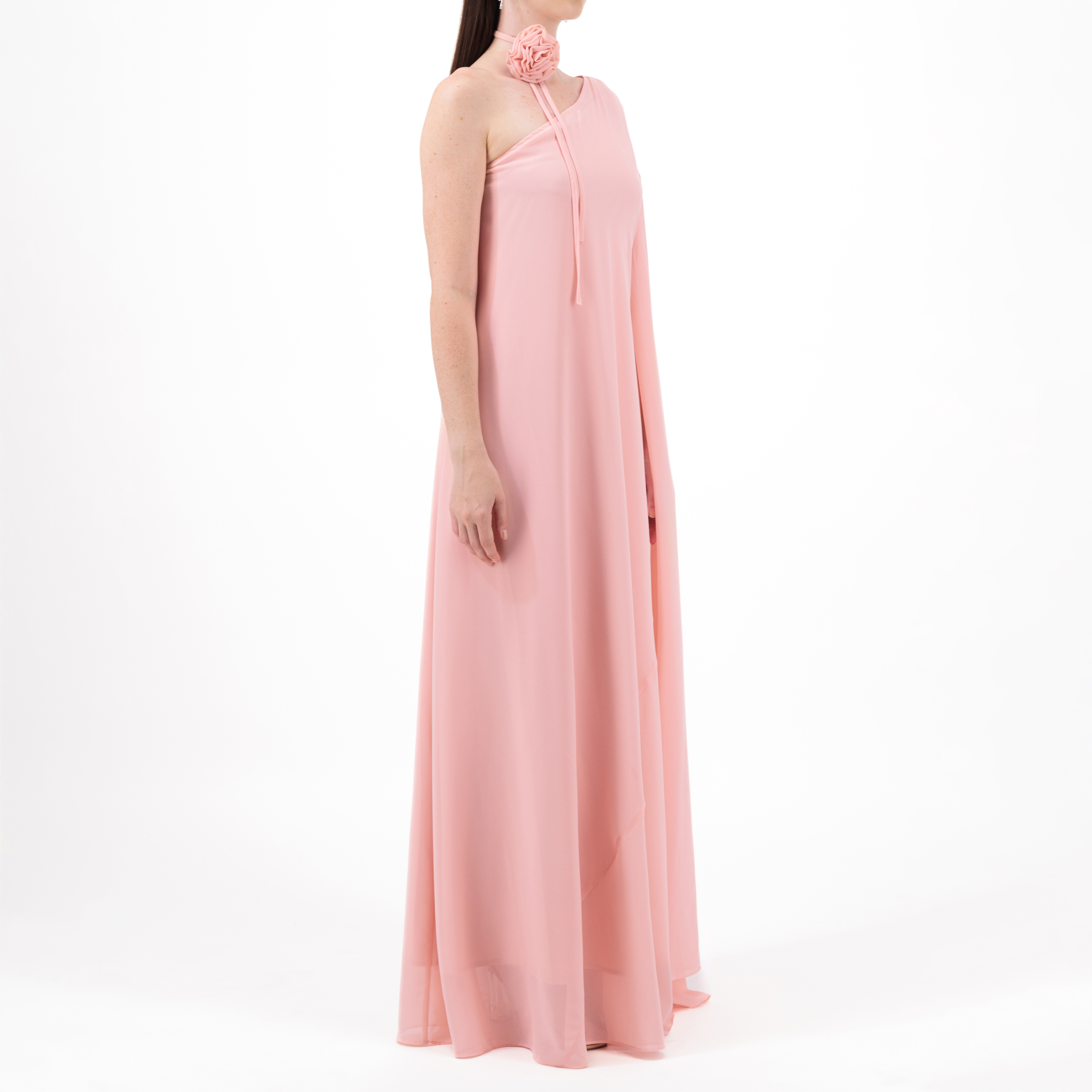 One-Shoulder Maxi Dress with Floral Detail – Blush